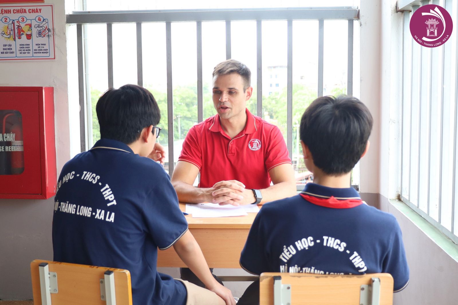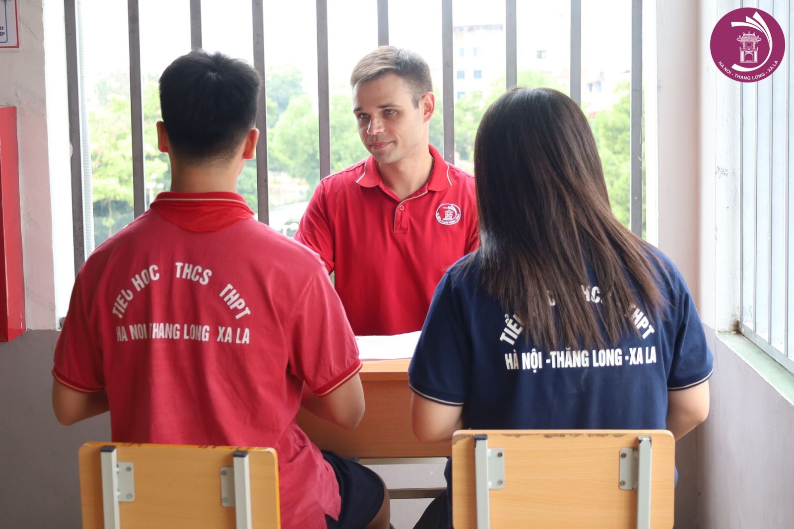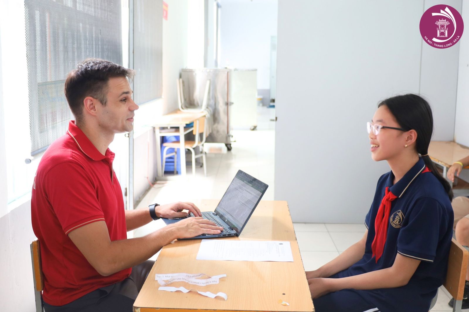 Đề thi Speaking Test tại trường HNTL được các thấy cô giáo trong tổ chuyên môn xây dựng dựa theo Khung tham chiếu trình độ ngôn ngữ chung của Châu Âu (CEFR) với các hoạt động nói theo hình thức các bài tasks 1-2 của kỳ thi IELTS hoặc bài thảo luận dưới dạng debate. Bài thi Speaking Test của các bạn học sinh HNTL được thục hiện dưới hình thức hỏi đáp 1 – 1 hoặc hỏi đáp theo nhóm 2 bạn theo format của từng trình độ bài thi nên giáo viên nước ngoài có thể dễ dàng nhìn nhận và đánh giá năng lực của từng học sinh. Từ kết quả đánh giá này, các thầy cô giáo sẽ điều chỉnh phương pháp dạy học sao cho phù hợp với khả năng nhận thức và tiếp thu của học sinh mỗi lớp. Cũng từ đây, thầy cô sẽ nhận biết được những phần kiến thức còn yếu của các con để bổ sung kiến thức kịp thời trước khi bước vào kỳ kiểm tra cuối học kỳ 1.