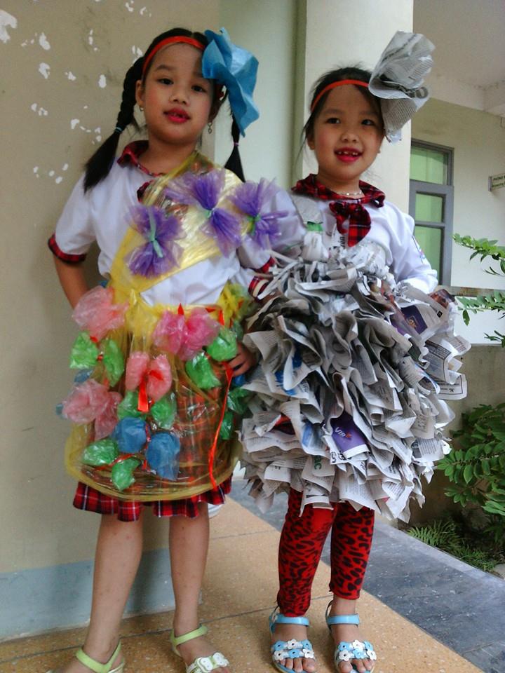 Bằng các chất liệu giấy màu, báo, giấy xốp, … dưới bàn tay khéo léo của các cô đã trở thành những trang phục lộng lẫy, những đường nét mềm mại tựa như những bông hoa mặt trời nhỏ xinh vươn mình đón nắng. Hay dưới sự kết hợp hài hòa các màu sắc của giấy bóng đã làm nên những bộ trang phục tựa như những bông hoa ngũ sắc đang rung rinh trước gió….