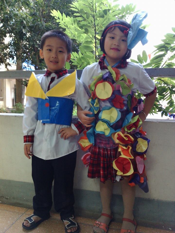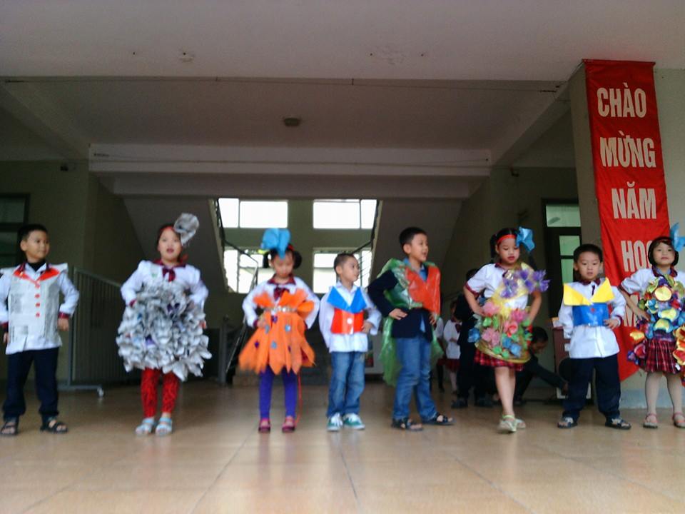 Đến hẹn lại lên, thứ 2 đầu tuần luôn là niềm mong đợi của các bạn học sinh và tuần này tập thể lớp 1A1 sẽ chính thức "xuất chiêu" trên sân khấu. Chuyến học tập thực tế tại vườn hoa Hà Đông vừa qua không chỉ mang lại những kiến thức bổ ích mà còn là nguồn cảm hứng để cô trò lớp 1A1 sáng tạo nên bộ sưu tập thời trang "Sắc thu" đầy đặc sắc và mới lạ. Bằng các chất liệu giấy màu, báo, giấy xốp, ... dưới bàn tay khéo léo của các cô đã trở thành những trang phục lộng lẫy, những đường nét mềm mại tựa như những bông hoa mặt trời nhỏ xinh vươn mình đón nắng. Hay dưới sự kết hợp hài hòa các màu sắc của giấy bóng đã làm nên những bộ trang phục tựa như những bông hoa ngũ sắc đang rung rinh trước gió.... Chương trình ngoại khóa của lớp 1A1 đã gây ấn tượng mạnh bởi phong cách trình diễn chuyên nghiệp của các siêu mẫu nhí, sự dẫn dắt uyển chuyển của MC Khoa An dù là lần đầu đứng trên sân khấu. Qua mỗi chương trình các bạn thực sự sẽ trưởng thành hơn rất nhiều, tự tin khi đứng trước đám đông, đó chính là mục đích giáo dục của nhà trường. Chúc các con học sinh luôn tràn ngập niềm vui và được đón xem nhiều chương trình ngoại khóa hấp dẫn hơn nữa. Cùng ngắm các siêu mẫu nhí nào: