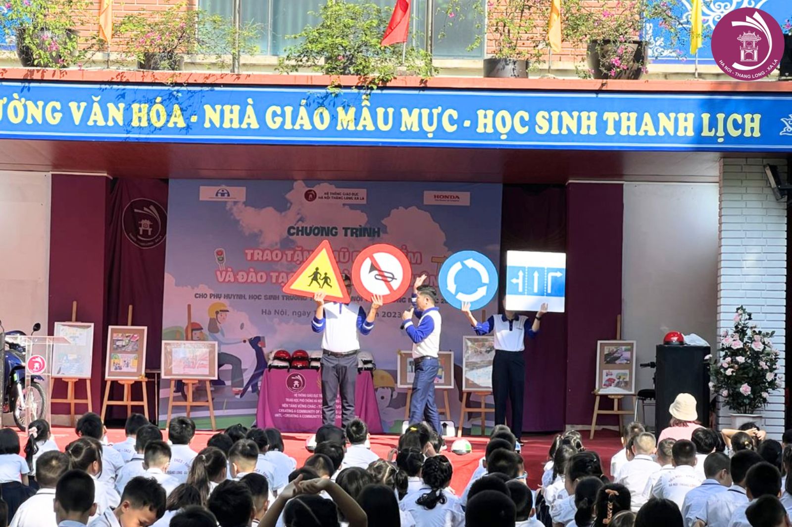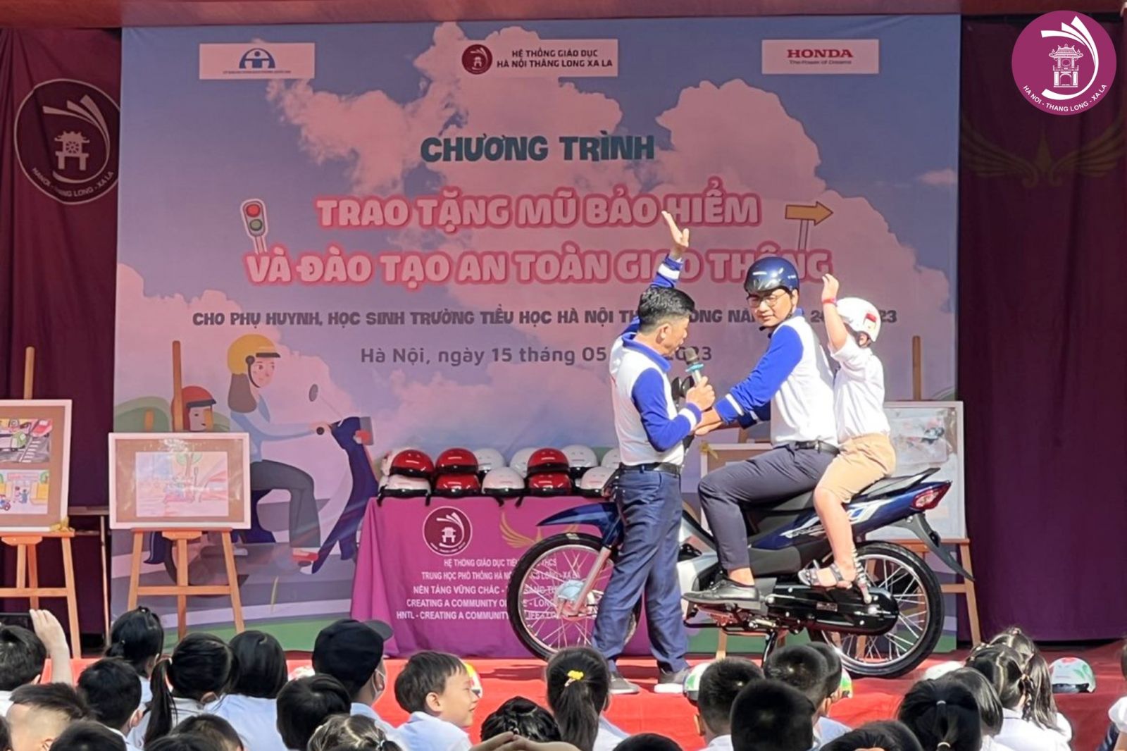 Với mục tiêu nâng cao ý thức của người dân về việc chấp hành quy định bắt buộc đội mũ bảo hiểm đạt quy chuẩn kỹ thuật Quốc gia cho trẻ em khi ngồi trên xe mô tô, xe gắn máy, xe đạp điện, qua đó giảm thiểu hậu quả do tai nạn giao thông gây ra đối với trẻ em, công ty Honda Việt Nam phối hợp với Ủy ban an toàn giao thông Quốc gia, trường tiểu học & THCS Hà Nội Thăng Long tổ chức chương trình “Trao tặng mũ bảo hiểm và đào tạo an toàn giao thông cho giáo viên, phụ huynh và học sinh” tại trường Tiểu học và THCS Hà Nội Thăng Long.