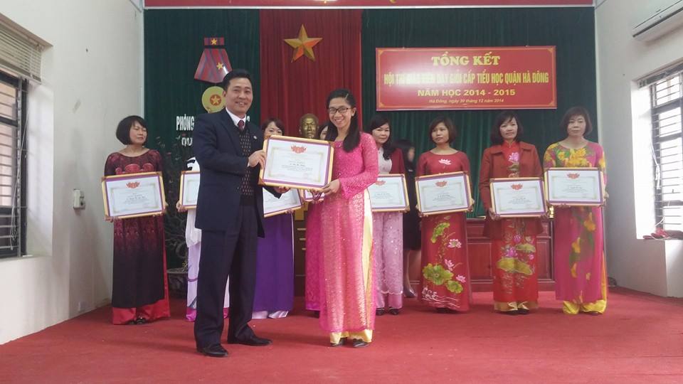 Cô Bùi Thu Hường vinh dự nhận bằng khen tại lễ trao giải Hội thi Giáo viên Giỏi Quận Hà Đông