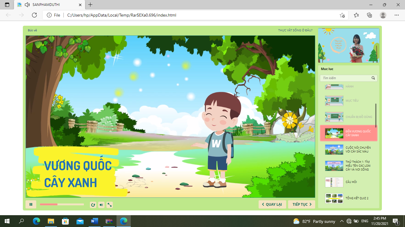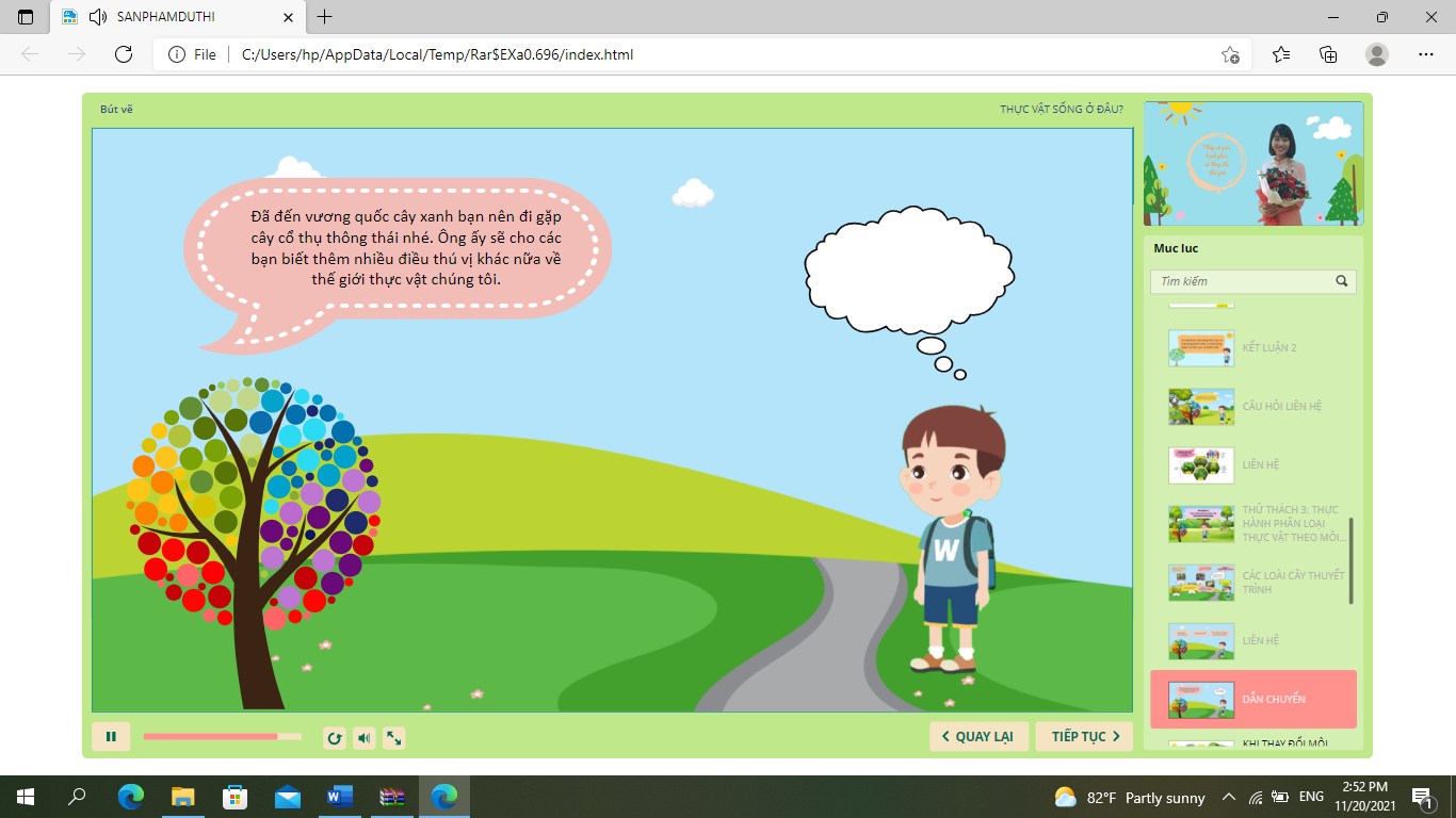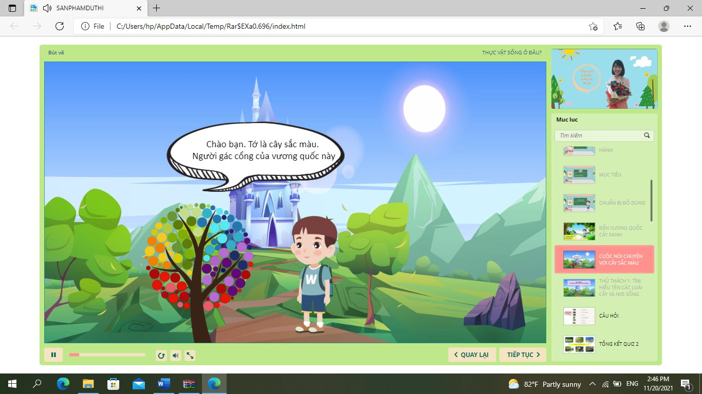 - Lấy bối cảnh là chuyến trải nghiệm tại vương quốc cây xanh, HS sẽ được tham gia cùng bạn Mít trong từng thử thách. Mỗi lần vượt qua thử thách của vuơng quốc, các bạn HS sẽ dần dần chiếm lĩnh được các kiến thức trong bài. - Tại vương quốc, Mít và các bạn HS được cây sắc màu hướng dẫn trải nghiệm các thử thách. |