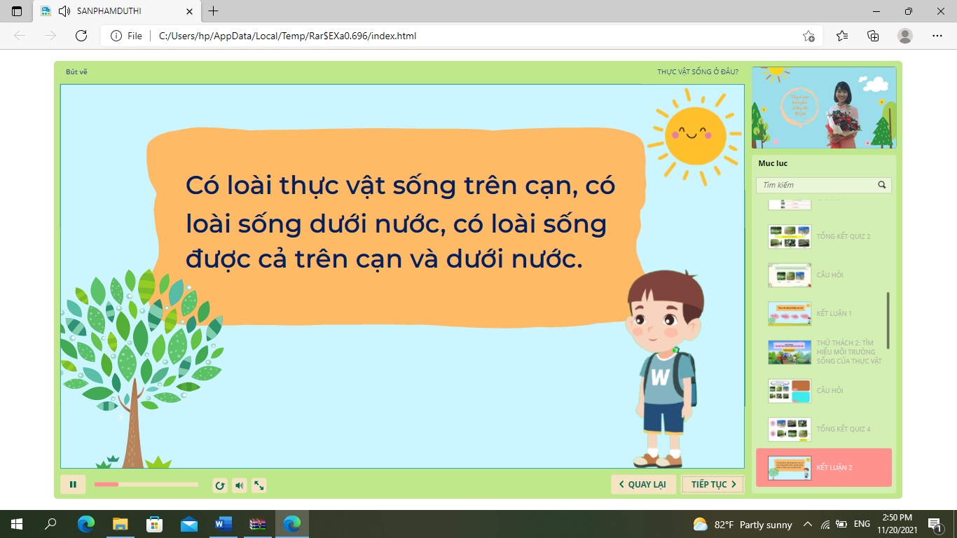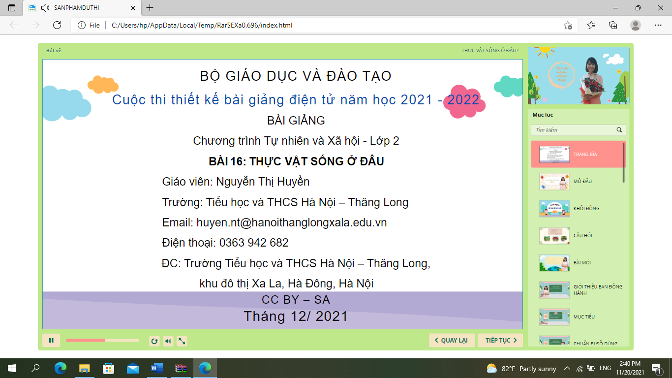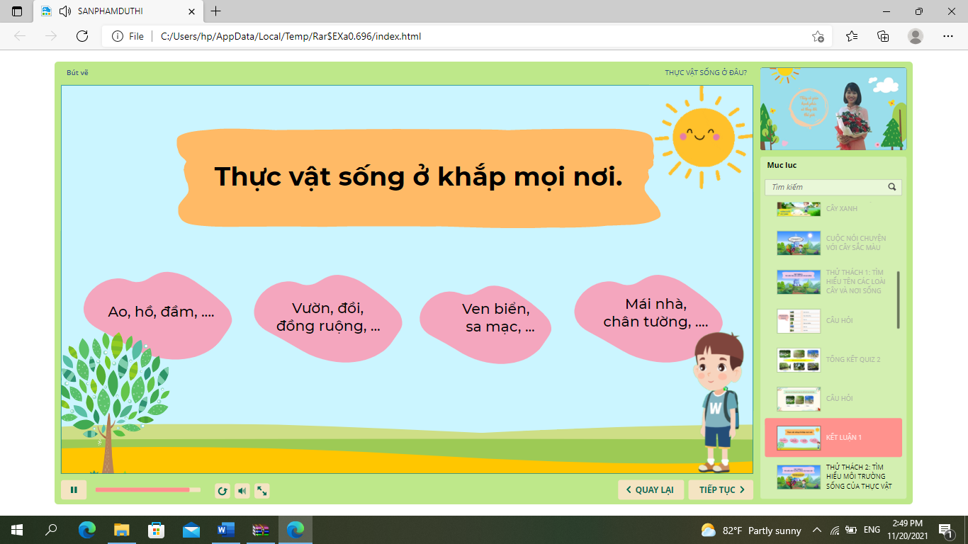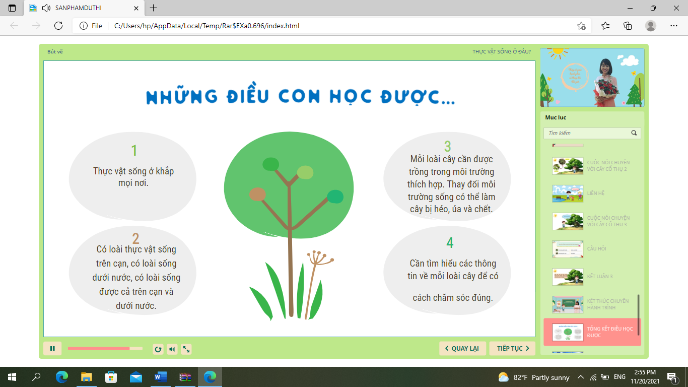 Trên đây là thuyết minh cho sản phẩm với bài giảng “ Thực vật sống ở đâu?” do cô giáo Nguyễn Thị Huyền, giáo viên Trường Tiểu học và THCS Hà Nội – Thăng Long thiết kế.