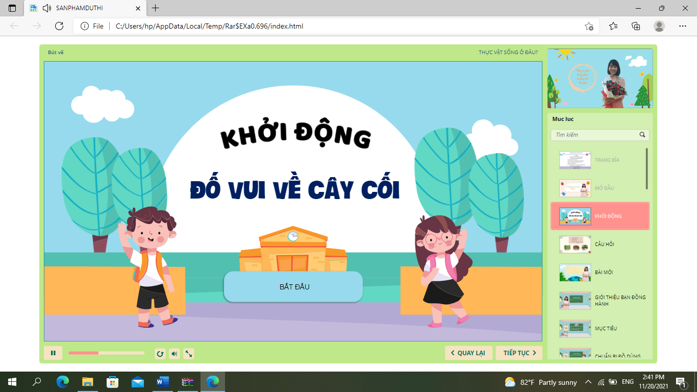 Trang này được trình bày theo hướng dẫn tạo trang giới thiệu của ban tổ chức. Được lồng nhạc nền để tạo cho các con học sinh sự thoải mái trước khi vào bài học. |