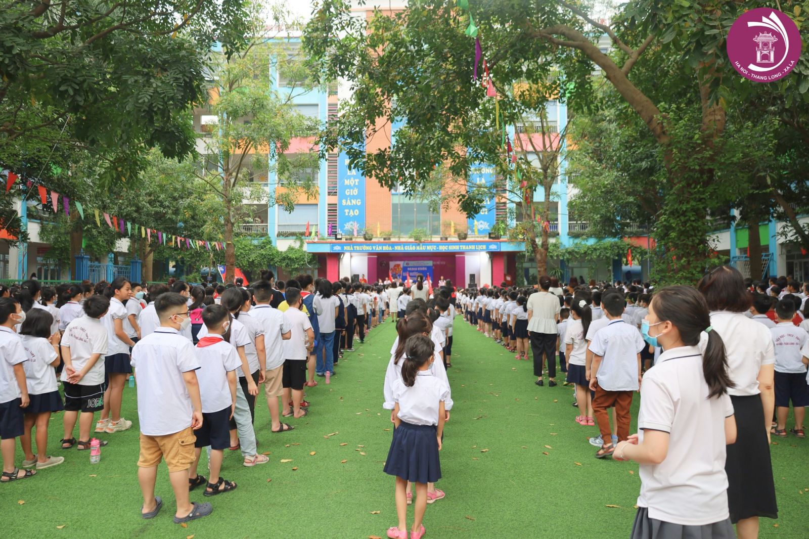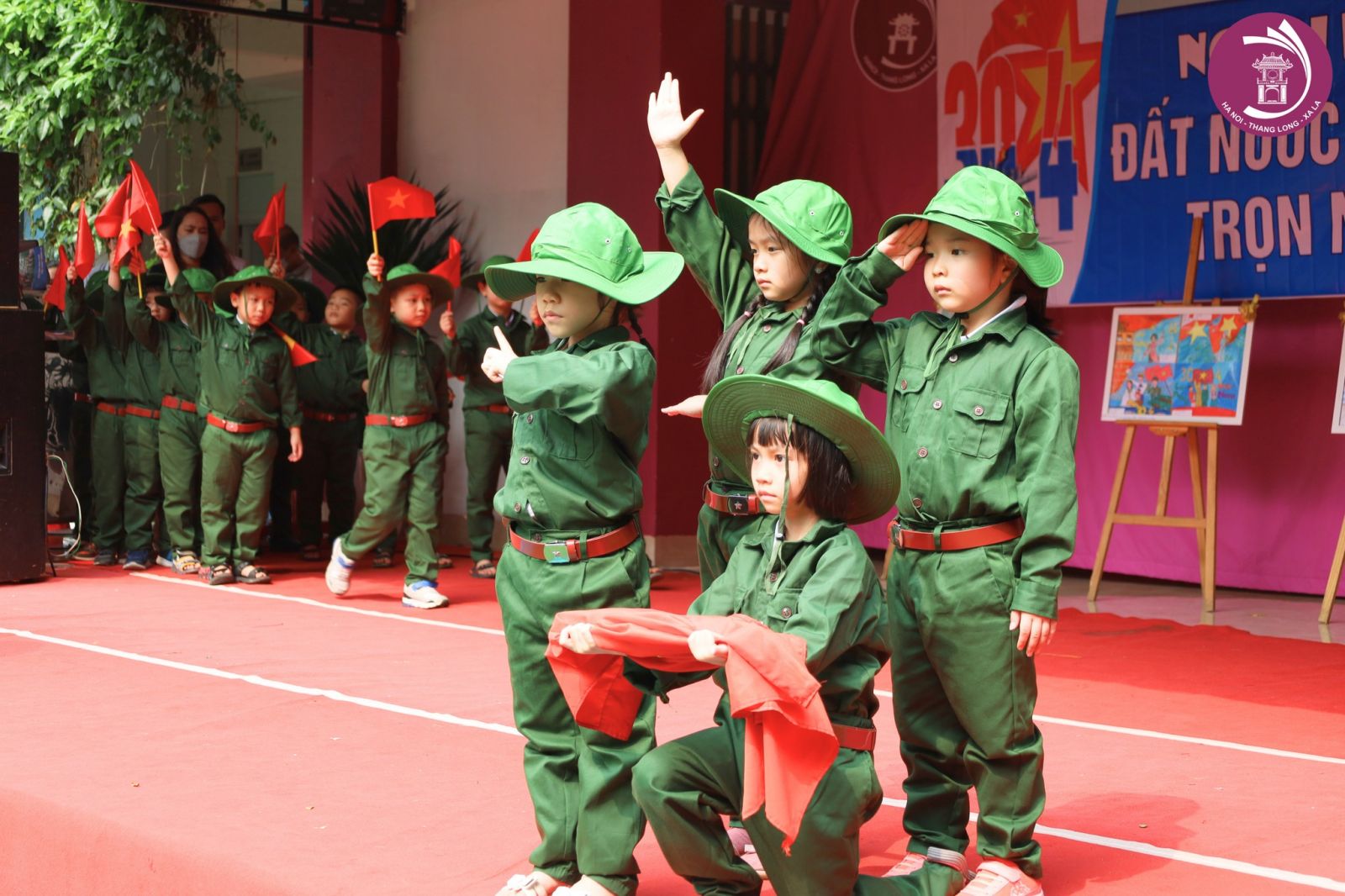 Để có thể truyền tải những giá trị lịch sử tới các học sinh một cách tự nhiên, tiết sinh hoạt dưới cờ đầu tuần với chủ đề "Đất nước trọn niềm vui" của các bạn học sinh HNTL đã được các thầy cô và các bạn học sinh tổ chức với nhiều hoạt động ỹ nghĩa như Thuyết trình theo tranh với chủ để theo dòng lịch sử của ngày 30/4 và ngày 7/5, văn nghệ với hoạt cảnh diễn tả lại một trang hào hùng trong lịch sử. Phần câu đố về các ngày lịch sử được các bạn học sinh hưởng ứng nhiệt tình với các câu trả lời vừa đúng vừa nhanh.