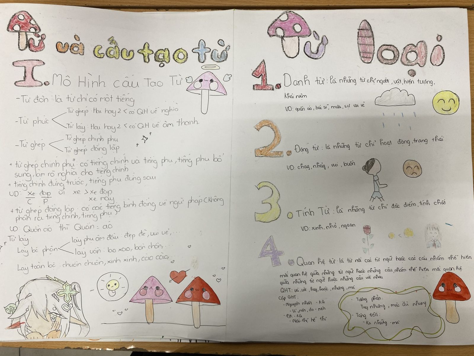 Đặc biệt, những kiến thức của môn Ngữ văn đã được các bạn học sinh tổng hợp và trình bày một cách vô cùng chi tiết và khoa học. Đây chính là kết quả cho quá trình giảng dạy nhiệt huyết của các thầy cô giáo và sự chăm chỉ, nỗ lực của các bạn học sinh. Thật vui khi môn Ngữ văn vẫn luôn tạo được nhiều hứng thú và cảm xúc cho các bạn học sinh. Từng góc poster được trang trí tỉ mỉ, đẹp đẽ chính là câu trả lời niềm đam mê, sự thích thú của học sinh với môn học này,