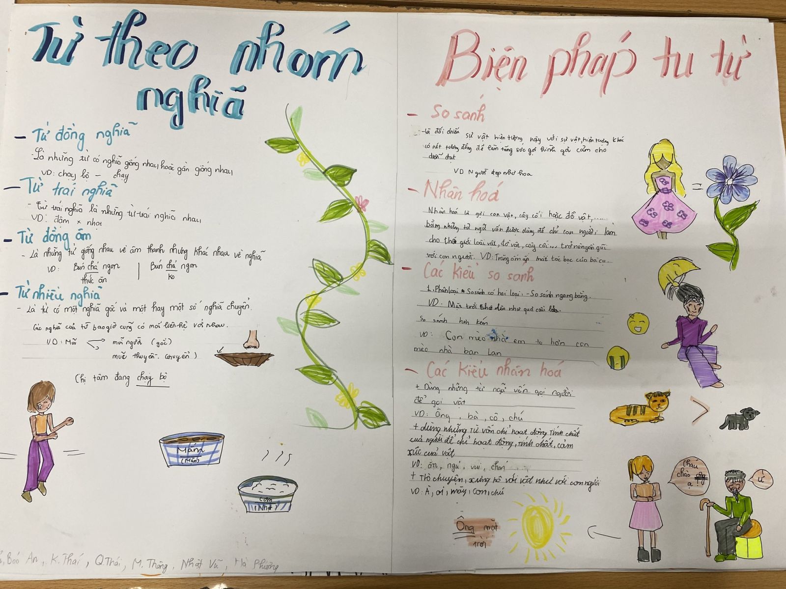Học tập chủ động và sáng tạo luôn là phương pháp giảng dạy mà các thầy cô giáo tại HNTL hướng đến. Bởi vậy, trước thềm năm học mới 2023 – 2024, các thầy cô giáo đã tổ chức nhiều dự án ôn tập dành cho các bạn học sinh HNTL. Đây là cơ hội để các bạn học sinh tổng hợp, ôn tập và nhắc lại kiến thức Ngữ văn của cả năm học. Đồng thời cùng là cơ hội để các bạn ấy phát huy khả năng sáng tạo và năng khiếu nghệ thuật của mình với những tấm poster ôn tập ấn tượng, chỉnh chu và mang tính thẩm mỹ cao.