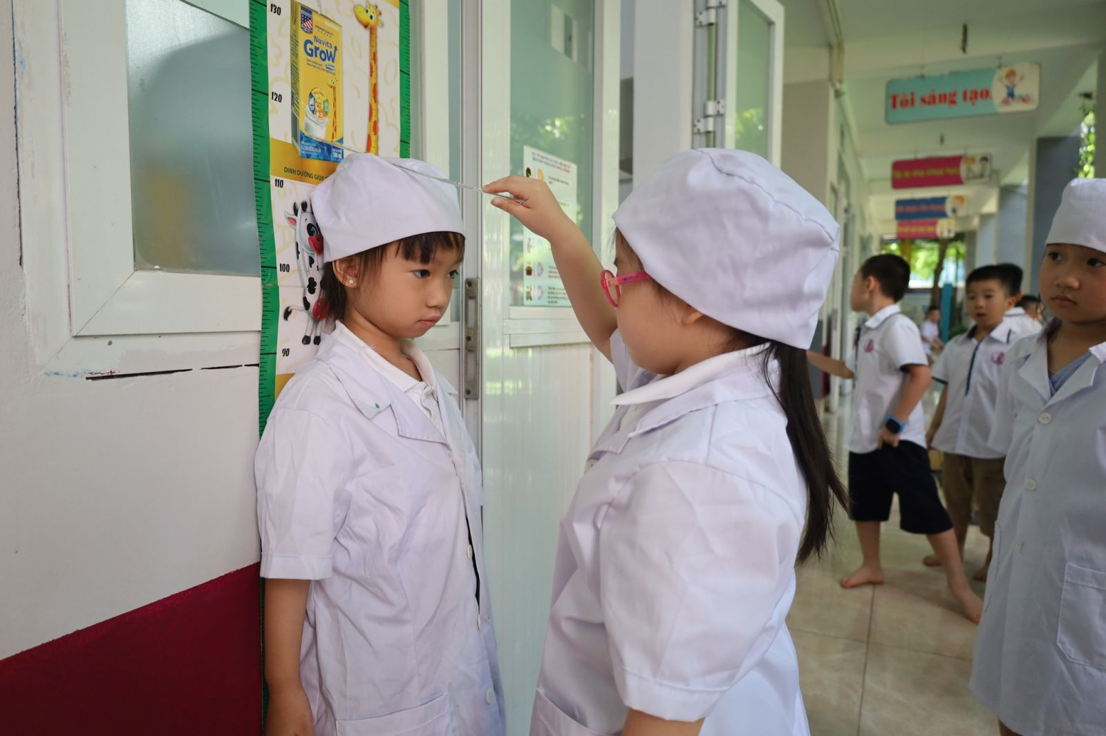 Hoạt động trải nghiệm này không chỉ giúp các bạn nhỏ có khoảng thời gian thư giãn sau những giờ học kiến thức trên lớp mà còn giúp các con có cơ hội thực hành sử dụng các kỹ năng toán học để sử dụng thước đo để đo chiều cao, sử dụng cân để cân nặng, đọc đúng con số. Việc hòa mình vào các hoạt động thực tế như vậy cũng giúp các bạn nhỏ hoàn thiện tính cách, hiểu thêm về nghề bác sĩ và biết trân trọng các giá trị của nghề bác sĩ. Rất có thể, một vài bạn trong số các bạn tham gia hoạt động trải nghiệm ngày hôm nay sẽ trở thành một bác sĩ trong tương lai.