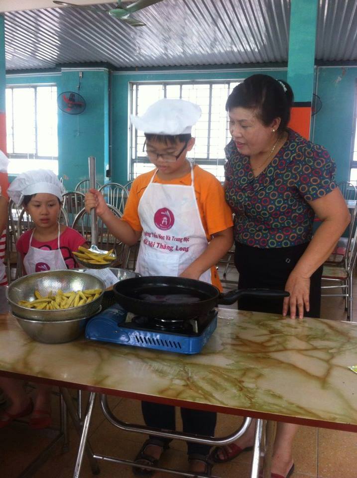 Cứ mỗi một mùa Hè đến là các bạn nhỏ Hà Nội - Thăng Long rất háo hức được tham gia sinh hoạt CLB Hè. Đến với CLB các bạn không chỉ được bổ trợ kiến thức mà còn được học tập và khám phá nhiều điều mới mẻ. Trong đó học nấu ăn chính là một môn học được các bạn yêu thích - Môn học nhằm giúp các bạn học sinh tiếp tục được làm quen với việc nấu ăn để có thể giúp đỡ bố mẹ và tự chăm sóc bản thân vì vậy bạn nào cũng rất hào hứng và phấn khởi. Các bạn lớp 4A2 lần này được học cách chế biến món khoai chiên, một món ăn yêu thích của hầu hết các bạn nhỏ. Dưới sự hướng dẫn tỉ mỉ của các cô chú nhà bếp và các cô giáo, từng bạn đã được thực hành và có thành quả là những đĩa khoai chiên thơm ngon, đẹp mắt. Sau buổi học này, chắc chắn các con sẽ có món khoai chiên hấp dẫn cho cả gia đình.