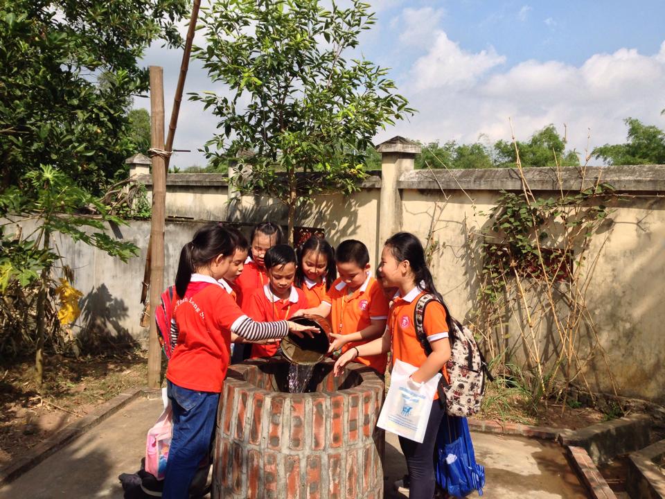 Quan sát chiếc giếng làng và thử múc nước