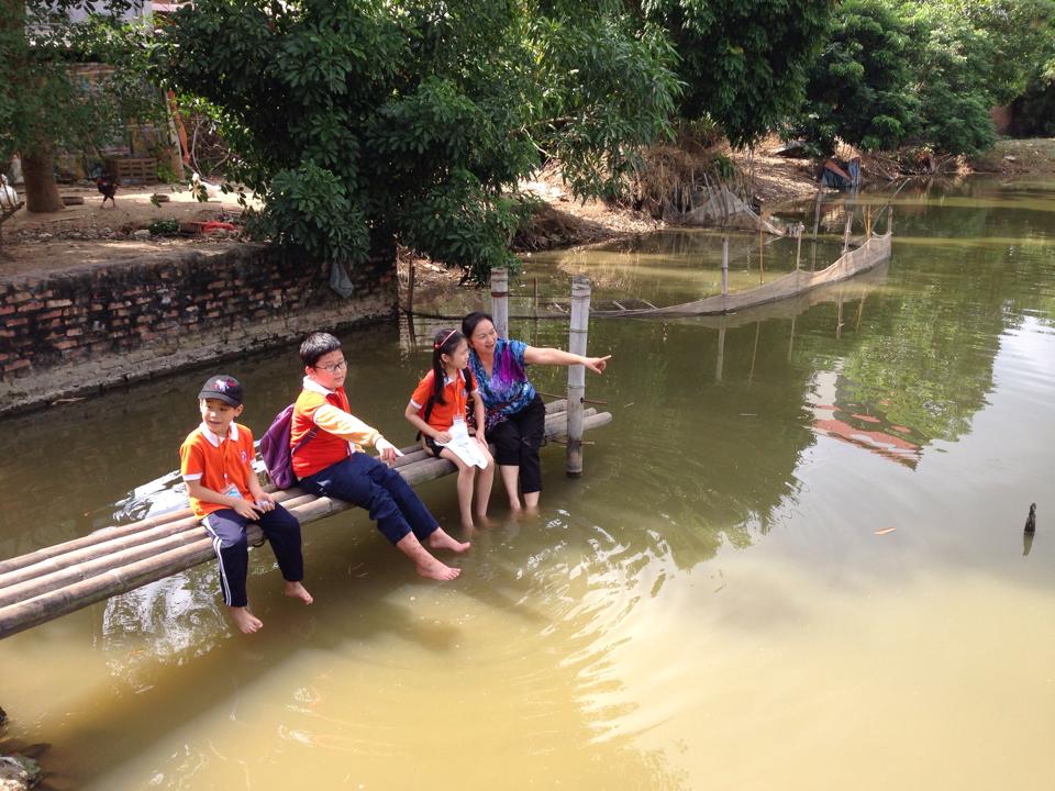 Nhằm giúp các con học tập hiệu quả nhất, biến những thứ xa vời trên sách vở trở thành những thứ thân thuộc, nhà trường đã tập trung cho các con được trải nghiệm thực tế tối đa ở mỗi nơi mà các con đến. Chuyến tham quan xứ Kinh Bắc vừa rồi đã giúp các con được trực tiếp quan sát cảnh vật, cỏ cây, hoa lá, nếp sống của người dân ở các làng quê Việt Nam. Các con còn được chơi các trò chơi mà chỉ ở thời cha mẹ chúng mới được chơi: chạy tung tăng trên cánh đồng dạ và bắt cào cào, châu chấu hay thử làm bác nông dân với chiếc liềm gặt dạ và quan sát cái ao làng và được nghe giới thiệu về cái ao cũng như những phong tục tập quán của người dân xưa kia: giặt giũ, tắm gội, nuôi cá, ... các con còn được thử đi trên chiếc cầu tre chênh vênh ra bờ ao... Tất cả những bài học đó chắc chắn các con sẽ không bao giờ quên. Cùng xem các bạn ý trải nghiệm như thế nào nhé!