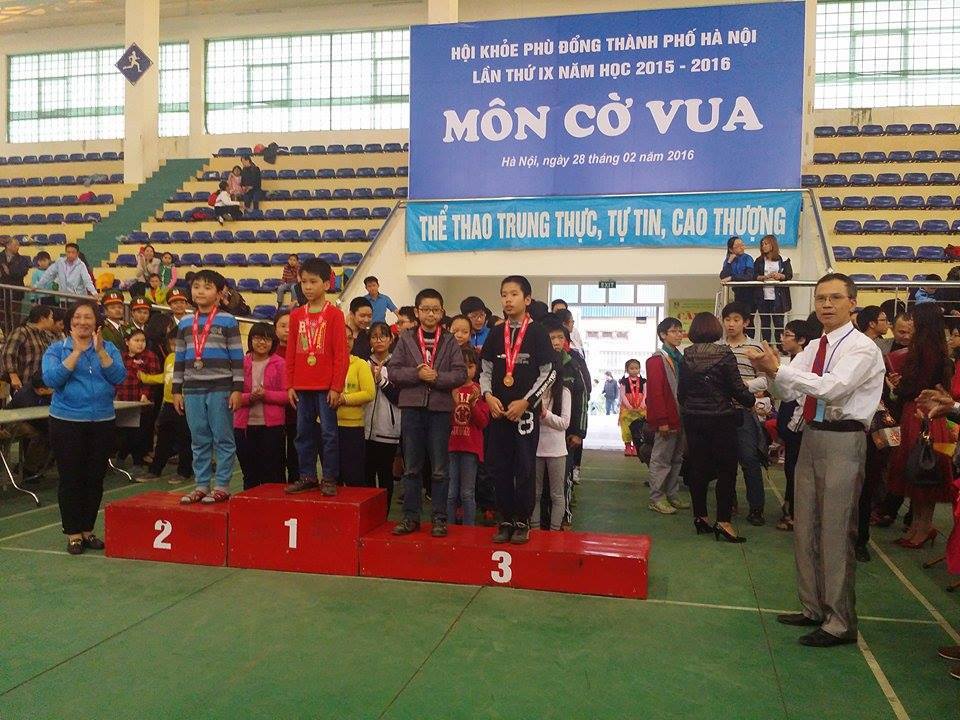 Nhà trường vui mừng thông báo và chúc mừng em: Vũ Ngô Hoàng Dương lớp 5A đã Đạt Huy chương Bạc bộ môn Cờ Vua trong kỳ thi Hội khỏe Phù Đổng cấp Thành phố vừa qua. Với sự nỗ lực của bản thân, các con đã mang niềm vui và vinh dự về cho gia đình, nhà trường. Với sự nhanh nhẹn, kiên trì Hoàng Dương không chỉ đạt giải ở bộ môn này mà còn đạt giải ở nhiều bộ môn khác và kết quả tham gia các kỳ thi học sinh giỏi các bộ môn: Toán, Tiếng Anh cũng rất tốt. Các con thực sự là những tấm gương sáng, là những cánh chim đầu đàn mẫu mực cho các em học sinh lớp dưới noi theo.