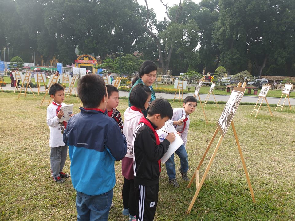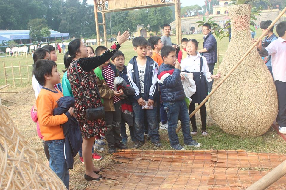 Các bạn nhỏ thích thú khi được khám phá những nét đẹp cổ truyền của Hà Nội.