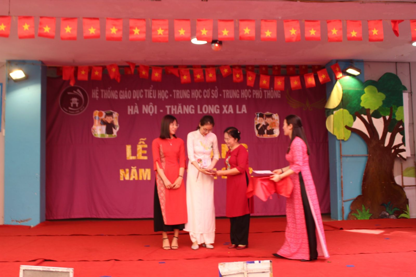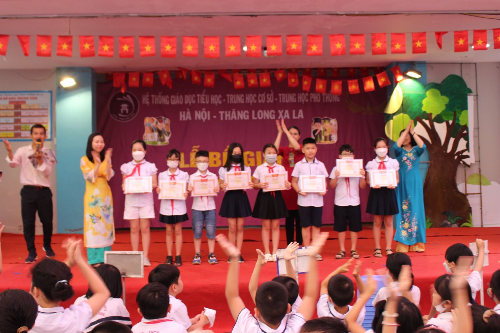 Lễ bế giảng bắt đầu bằng những tiết mục văn nghệ vô cùng sôi động của các bạn học sinh trong trường. Tiếp đến là phần tổng kết của BGH nhà trường và trao phần thưởng, học bổng cho đại diện các học sinh xuất sắc ở cấp tiểu học, các học sinh thủ khoa, học sinh giỏi Quận và học sinh đạt giải các kỳ thi toán quốc tế khối trung học cơ sở. Cũng trong ngày, các thầy cô đại diện trong BGH đã đi các lớp để chúc mừng và trao tặng giấy khen và phần thưởng tới từng em học sinh. Bên cạnh đó, BGH nhà trường cũng đã vinh danh các thầy cô đã tham gia Giờ dạy sáng tạo và đạt kết quả tốt, tiếp đến là trao giấy chứng nhận và phần thưởng cho thầy/cô đã ôn luyện cho học sinh thi HSG cấp Quận đạt kết quả cao 24 học sinh đạt giải Nhất, Nhì, Ba và học sinh đạt giải trong kì thi Toán quốc tế AMO, TIMO, ASMO (5 Giải Bạc, 4 Giải Đồng, 1 Giải Khuyến khích).