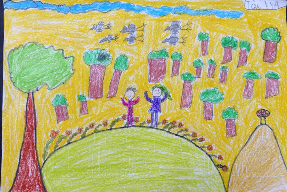 Mĩ thuật, một môn học không đơn giản, có phần đòi hỏi năng khiếu cá nhân. Tuy nhiên, tiết Mĩ thuật lại là một môn học được các bạn học sinh rất yêu thích. Sau mỗi tiết học là các tác phẩm nghệ thuật của các nghệ sĩ tí hon được ra đời. Với muôn màu sắc, hình ảnh vui tươi, sinh động như chính tính cách lứa tuổi các em vậy. Các bạn được thỏa sức tưởng tượng, sáng tác, những bức tranh còn là nơi gửi gắm cả những ước mơ, suy nghĩ của các bạn nhỏ... Những bức tranh xé dán còn đòi hỏi kỹ năng tư duy tập thể và hoạt động theo nhóm để đạt hiệu quả cao. Một số tác phẩm của các nghệ sĩ tí hon: