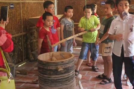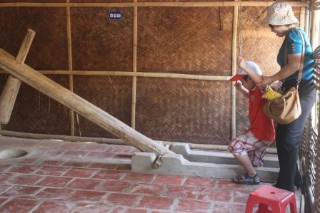 Giã gạo vất vả lắm các bố mẹ ạ.