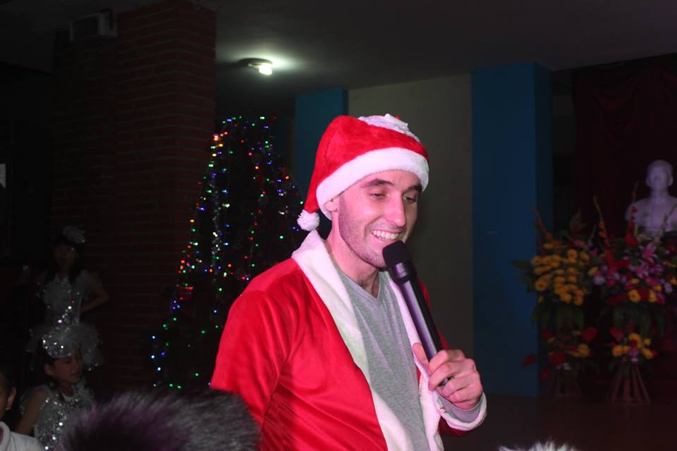 Niềm vui còn như vỡ òa trong đêm nhạc hội bởi sự xuất hiện của ông già noel- thầy bản ngữ của CLB Tiếng Anh nhà trường. Trong vai trò ông già Noel thầy mang tới buổi nhạc hội các trò chơi Tiếng anh sinh động, hấp dẫn khiến bạn nào cũng háo hức, giơ tay thật cao để được lên sân khấu tham gia và nhận quà. Thay mặt cho nhà trường, ông già Noel đã tặng quà Giáng sinh cho tất cả các lớp.