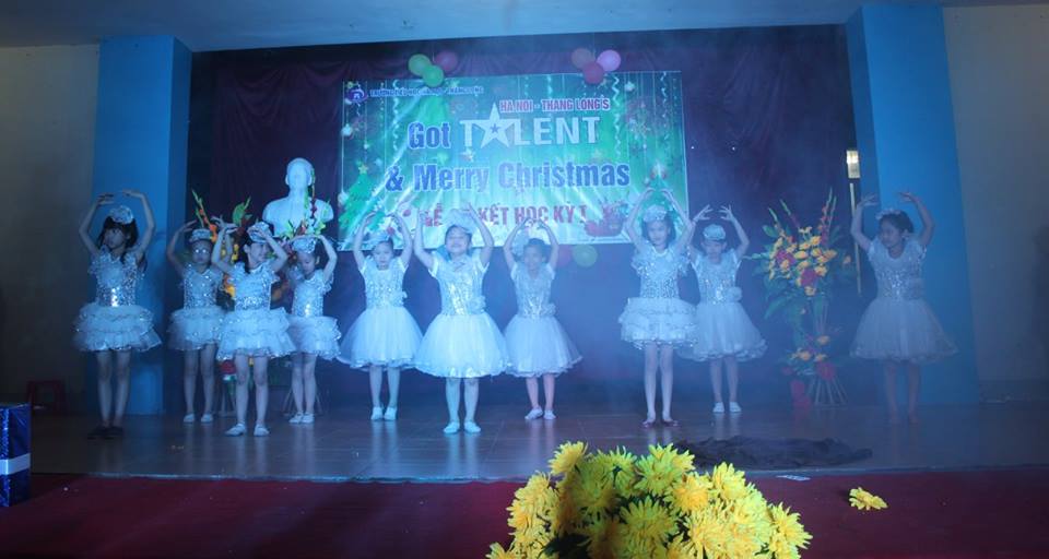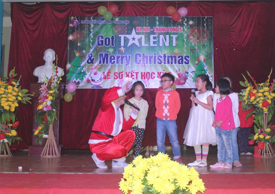 Thay mặt Ban Giám hiệu nhà trường cô đã ghi nhận kết quả học tập, rèn luyện của các học sinh trường tiểu học Hà Nội – Thăng Long và mong rằng 4 tháng nữa, khi Tổng kết năm học, nhiều học sinh của trường sẽ được tuyên dương vì đã đạt giải cao của vòng thi cấp quận, vì kết quả học tập tốt hơn học kì I. Nghĩa là có nhiều học sinh hơn học kì I sẽ được tuyên dương về những nỗ lực và cố gắng học hành, về nề nếp văn minh, thanh lịch. Sau phần sơ kết là chương trình Nhạc hội Tiếng Anh rực rỡ sắc màu mừng những thành tích đã đạt được ở học kỳ I và mừng Lễ Giáng sinh, chào năm mới! Trên nền nhạc hiện đại và ánh đèn sân khấu lung linh, các siêu mẫu nhí lớp 1A2 và 1A4 đã gây ấn tượng bởi màn trình diễn thời trang đầy sôi động, những bước đi uyển chuyển và đầy tự tin đã tạo điểm nhấn riêng cho tiết mục.