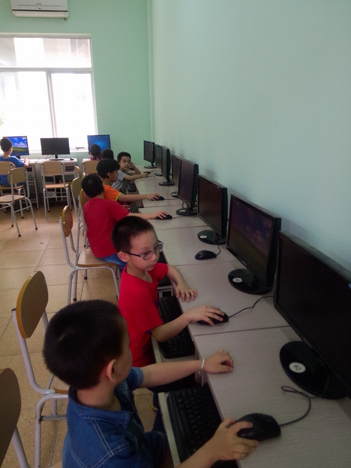 Tuần này các con đã làm quen với máy tính, tập khởi động và tắt máy đúng cách đồng thời còn tập gõ chữ cái mà các bạn đã được học. Như vậy vừa học vi tính các bạn lại học cả Tiếng Việt nữa, thật thú vị! Một số hình ảnh ngày học thứ 7 của các bạn nhỏ đáng yêu: