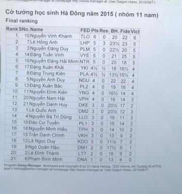 Tiếp đó vượt qua 7 trận thi đấu với 4 trận thắng, 2 trận hòa và 1 trận thua, Vũ Ngô Hoàng Dương đã đạt giải 3 của bộ môn Cờ Vua cấp Quận. Còn Vũ Ngô Minh Anh mặc dù chưa đạt thành tích trong mùa giải lần này nhưng con đã có cơ hội được tập luyện với thi đấu để có thêm những kinh nghiệm cho mùa giải năm sau.Minh Anh bước vào trận đấu đầu tiên