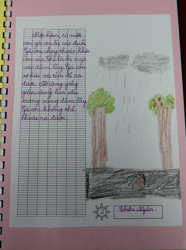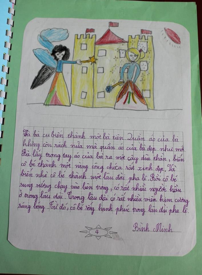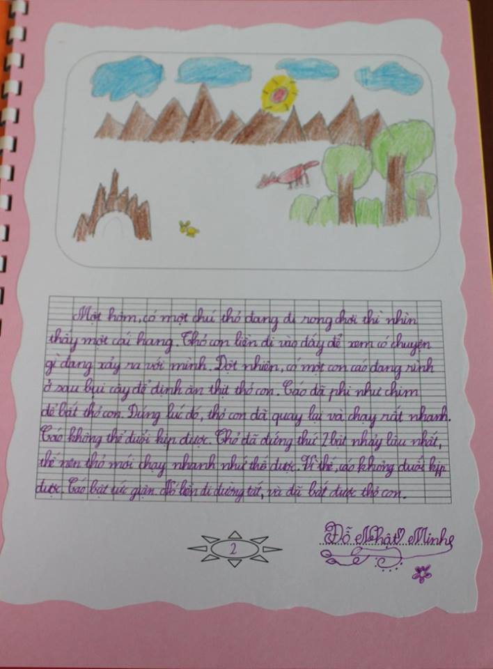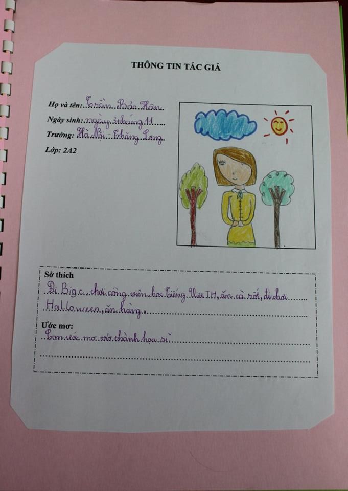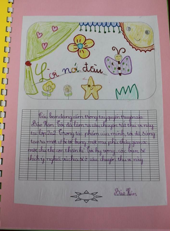 Chắc chắn các bố mẹ sẽ rất ngạc nhiên khi nhận được những tập truyện mới sáng tác của các con. Dưới óc sáng tạo, trí tưởng tượng phong phú và giọng văn mạch lạch cùng những hình ảnh sinh động, các nhà văn nhí của chúng ta đã cho ra đời các tác phẩm truyện độc đáo. Mỗi tác phẩm dài hàng chục trang nên ad không thể chụp hết các trang của quyển truyện, xin gửi đến các bố mẹ một vài trang truyện trong tập truyện của các con để các bố mẹ cùng thưởng thức và cổ vũ cho các nhà văn tương lai.