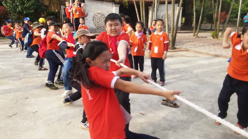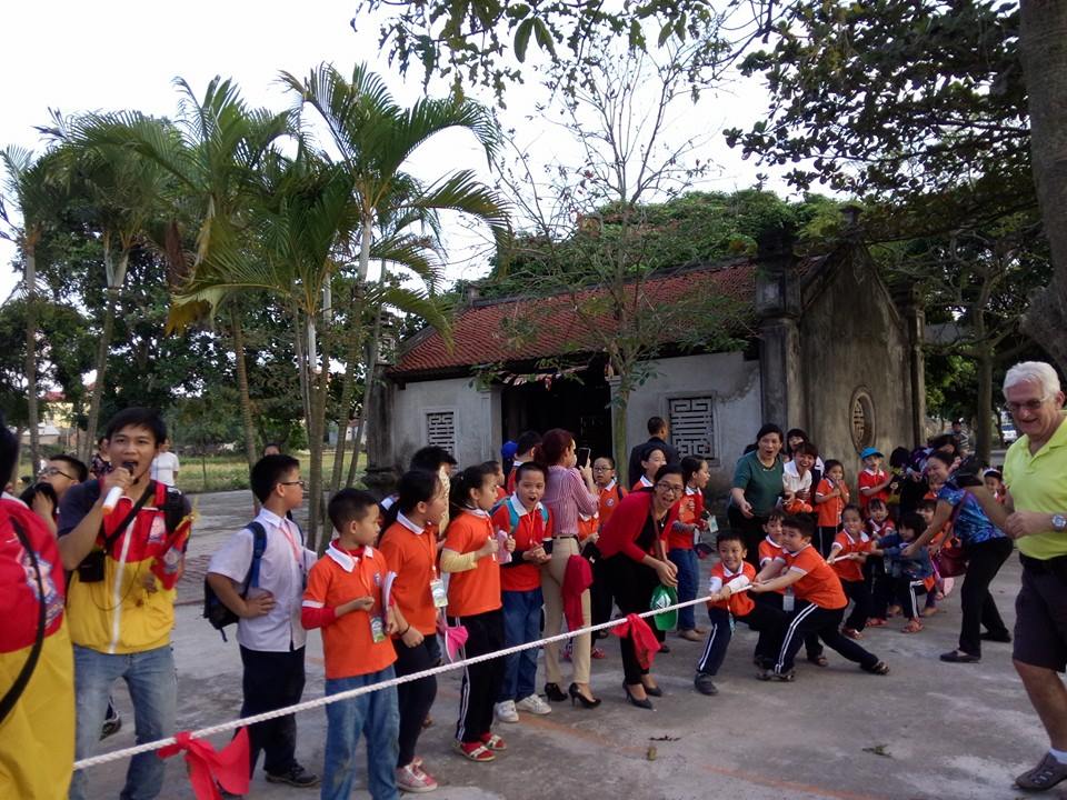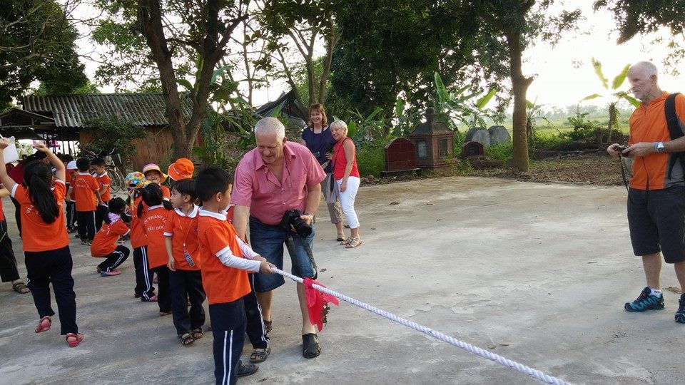 Các du khách nước ngoài rất hứng thú khi quan sát các bạn nhỏ chơi kéo co
