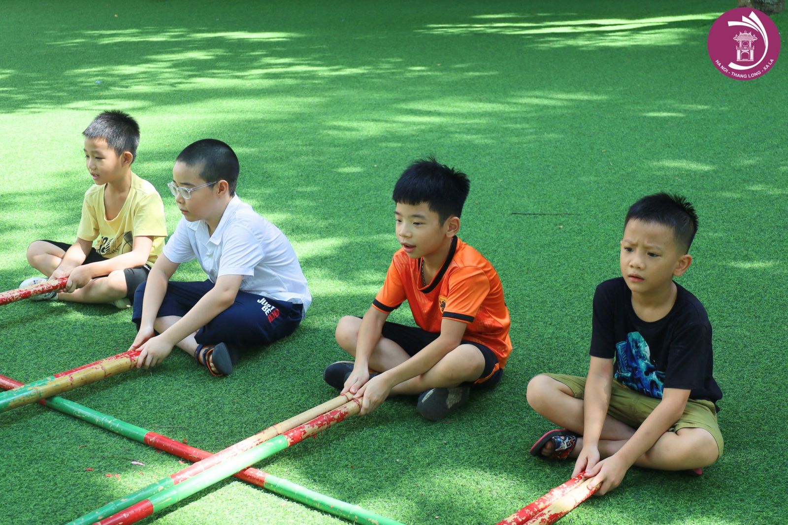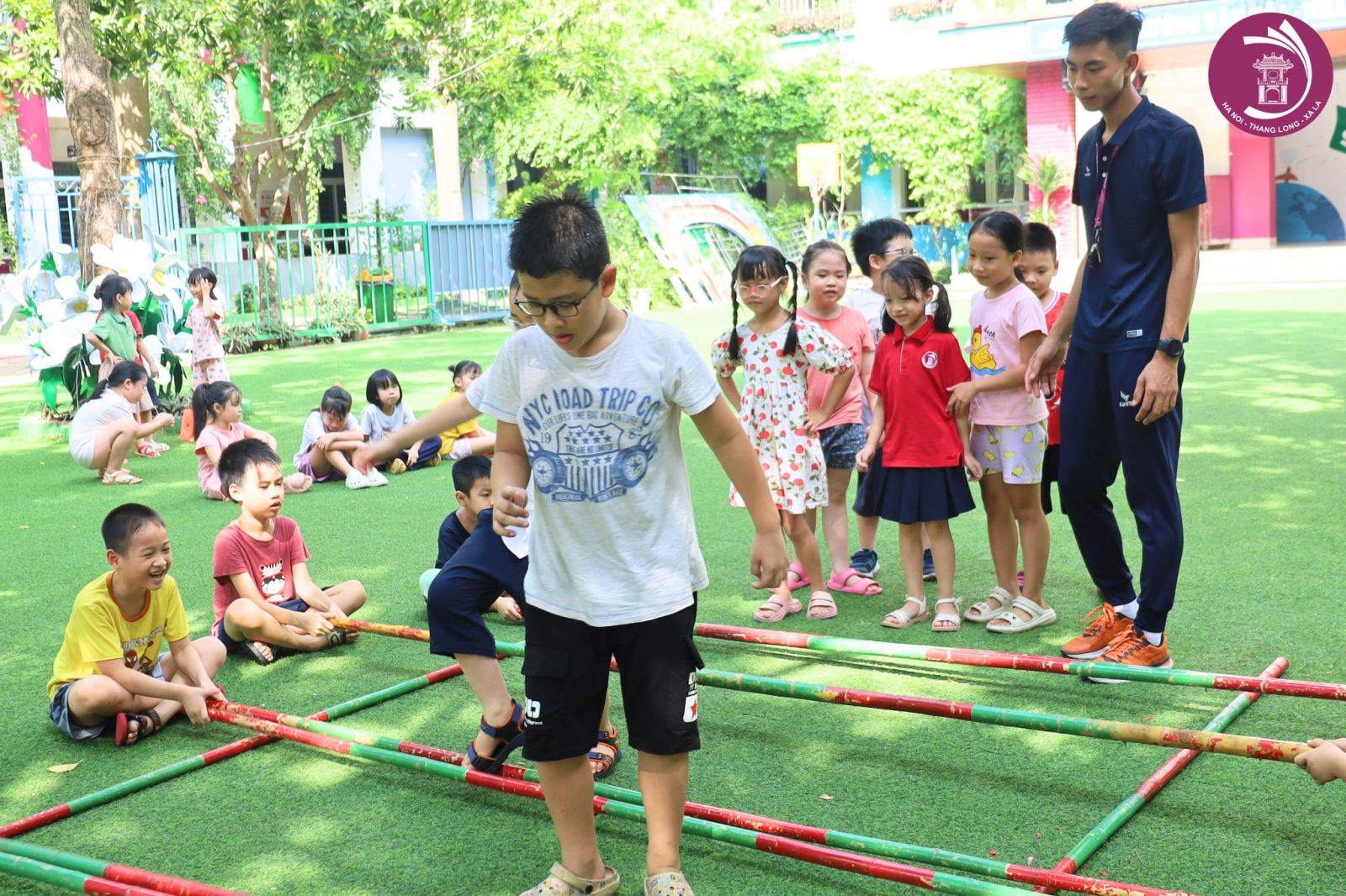Với mục đích tạo điều kiện cho học sinh được tiếp cận và hiểu sâu hơn về văn hóa dân gian, qua đó, giáo dục văn hóa truyền thống cho học sinh, bảo tồn và phát huy vốn trò chơi dân gian của dân tộc, các thầy cô tại Hà Nội Thăng Long đã tổ chức tuần lễ văn hóa dân gian với nhiều hoạt động đa dạng, hấp dẫn. Nhảy sạp là 1 trò chơi phổ biến tại các vùng núi Tây Bắc, có sức hút mạnh mẽ và dễ lôi cuốn nhiều người tham gia. Nhảy sạp thường diễn ra trong các lễ hội hoặc ăn mừng chiến thắng giữa quân và dân xưa kia. Hôm nay, các bạn nhỏ lớp 1 tham gia Trại hè tại Hà Nội Thăng Long đã được cùng nhau tham gia vào điệu nhảy dân gian thú vị này.