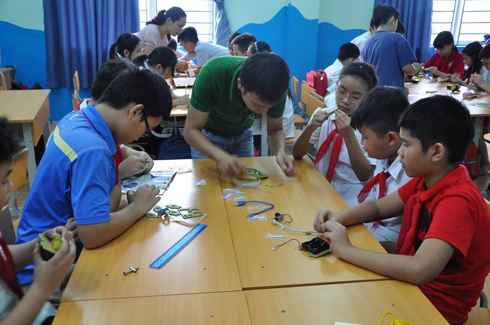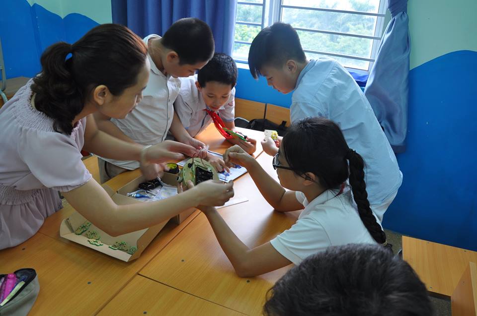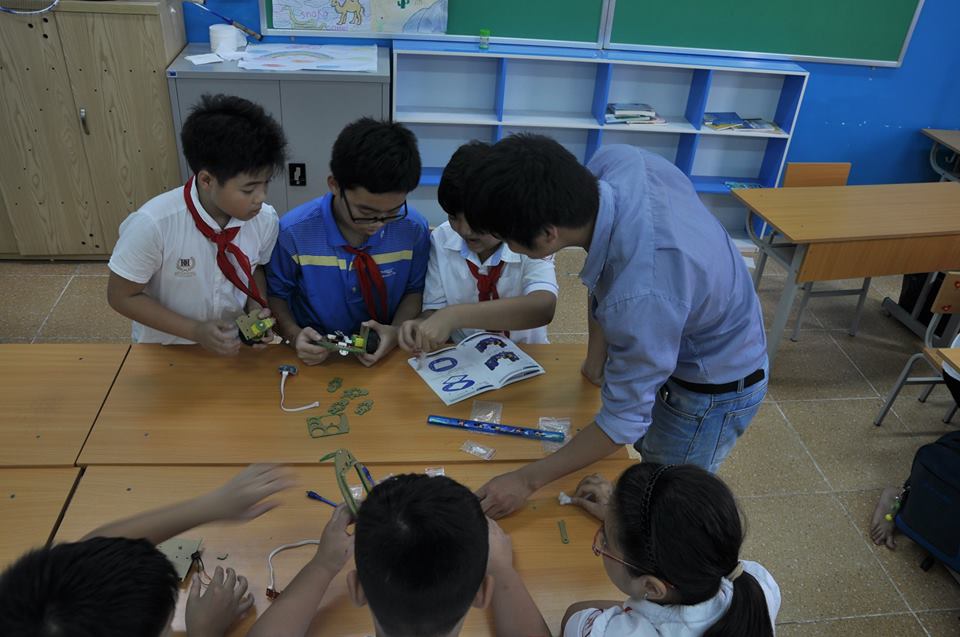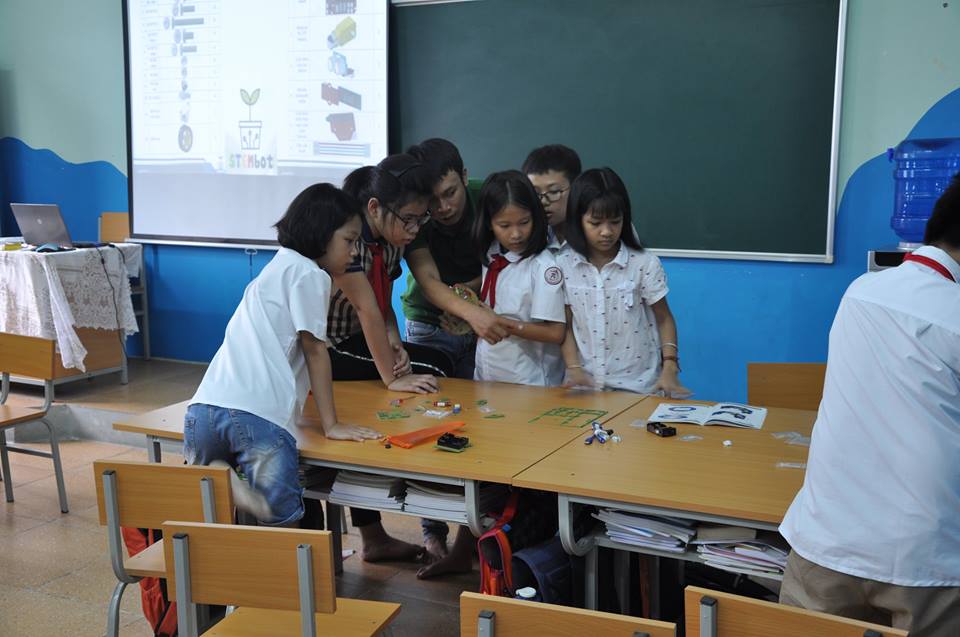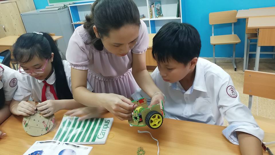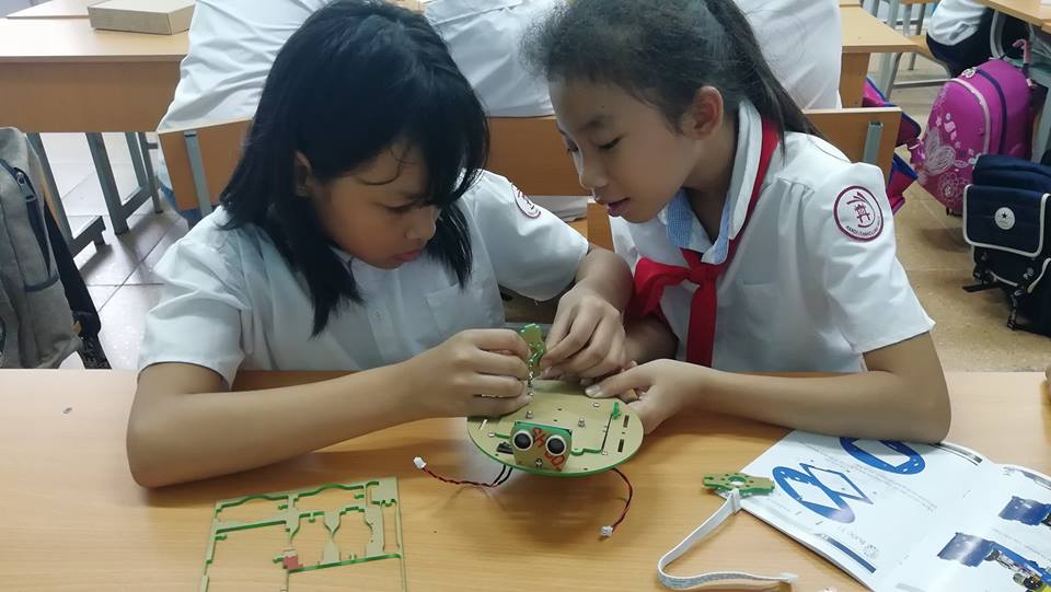 KHƠI NGUỒN VÀ NUÔI DƯỠNG ĐAM MÊ Lần đầu tiên các bạn học sinh khối 6 được làm quen với lập trình. Các bạn vô cùng hào hứng trước sự thông minh của những con Robot. Rất nhiều câu hỏi được đặt ra: Sao nó có thể làm được như thế ạ thầy? Thưa thầy, nó chạy bằng gì ạ? Bên trong nó là cái gì mà nhiều dây xanh đỏ vậy thầy? Sao nó có thể tránh được nhau ạ? Mình có thể chế tạo ra nó không thầy? Cảm ơn các thầy đã khởi nguồn và truyền lửa cho các em ngay từ tiết học đầu tiên. Mong các em sẽ từng bước nuôi dưỡng niềm đam mê của mình!