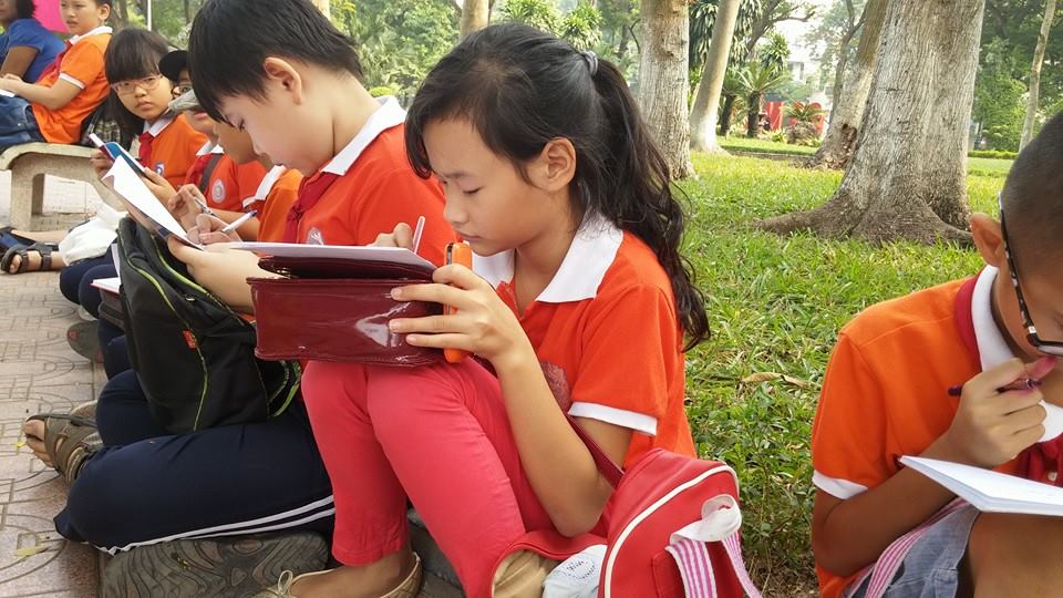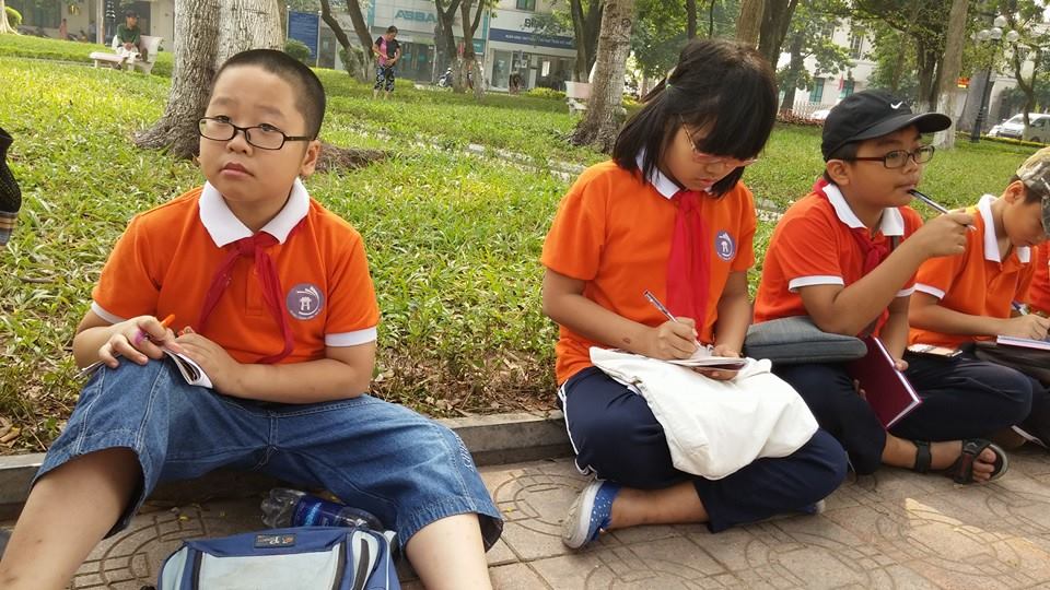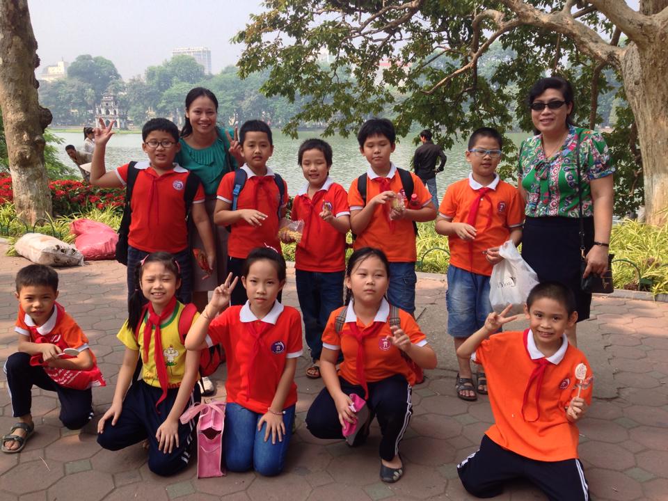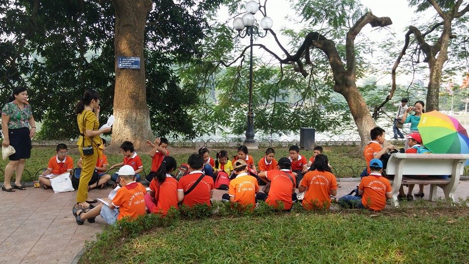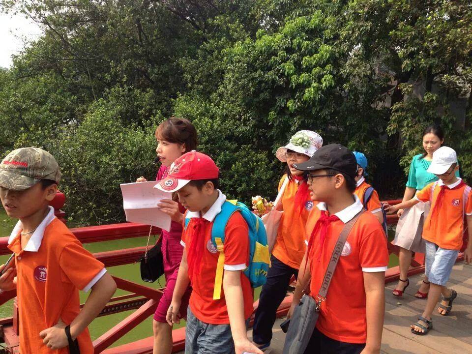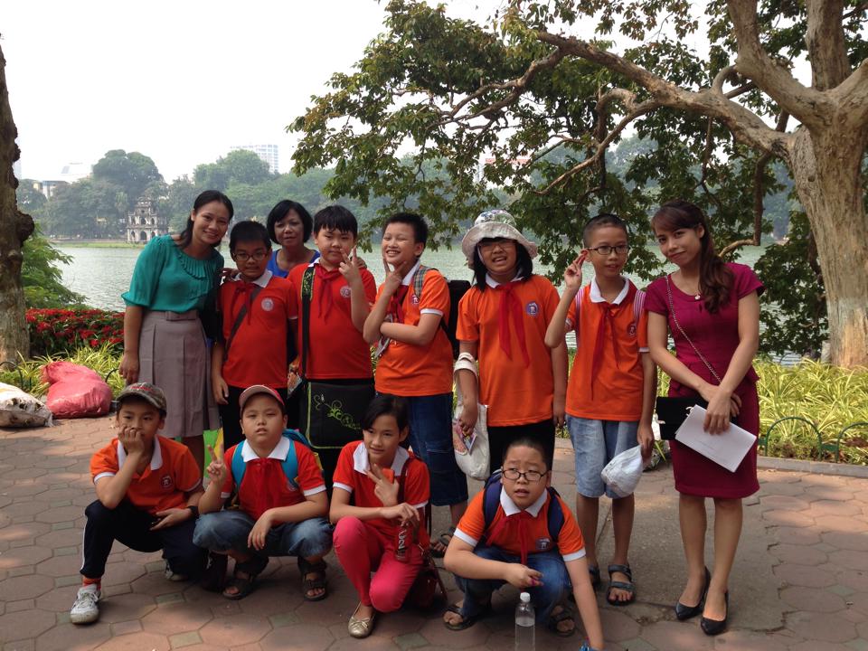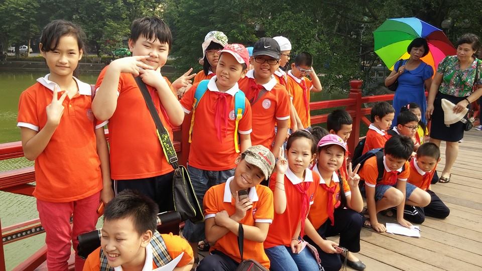 Thực hiện tuần học tập thực tế, các em học sinh lớp 4, 5 đã khởi động bằng một hành trình đặc biệt: Thực hành kỹ năng đi xe buýt với nếp sống văn minh, lịch sự và khám phá các danh thắng gần Hồ Hoàn Kiếm, Nhà hát lớn. Hầu hết các bạn nhỏ lớp 4, 5 đều gần trường nên ít có cơ hội được đi xe buýt. Vì vậy khi được tự đi xe buýt, các bạn rất tò mò, thích thú. Các bạn đã tự tìm hiểu các thông tin về lịch trình các tuyến xe buýt để đi và về thuận lợi nhất. Không chỉ là đi xe buýt đơn thuần mà các em còn được các cô giáo hướng dẫn rất kỹ trước khi xuất phát về các quy định và những giao tiếp ứng xử văn minh, lịch sự khi đi xe buýt. Rất vui là các bạn lớp 4, 5 đều đã thực hành rất tốt những điều các cô đã hướng dẫn, biết chủ động nhường chỗ khi có các cụ già, phụ nữ có thai lên xe. Không chạy nhảy, nô đùa và trò chuyện quá to trên xe, ... Tiết trời thu dịu mát, ánh nắng vàng không chói chang làm cho buổi học thêm hấp dẫn, dù phải chuyển tiếp 2 chặng xe buýt mới lên tới Hồ Gươm nhưng với khí thế sôi nổi và niềm vui háo hức nên thoắt cái các em đã có mặt ở Bờ hồ. Nhanh chóng tập trung và không giấu nổi niềm vui, các bạn đều reo lên rất sung sướng trước cảnh đẹp của hồ. Cả đoàn đã lựa chọn một địa điểm lí tưởng vừa quan sát được Tháp Rùa, Đảo Ngọc Sơn, Cầu Thê Húc vừa quan sát được Tháp Bút để cùng nhau nghe cô Phương Hằng giới thiệu về các di tích. Các bạn cũng đã rất tích cực tham gia phát biểu ý kiến khiến buổi học thật sôi động, sau đó cùng nhau "mục sở thị" các danh thắng: Tháp Bút, Đài nghiên, Đảo Ngọc Sơn, Đền Ngọc Sơn, Cụ Rùa, Tháp Hòa Phong, Tượng đài Lý Thái Tổ, Tháp Rùa và Nhà Hát lớn. Đặc biệt học sinh lớp 4, 5 còn được thưởng thức món Kem Tràng Tiền nổi tiếng tại chính phố Tràng Tiền nữa đấy, khỏi phải nói cũng biết các bạn ý đã nhảy lên sung sướng thế nào. Sau đây là chùm ảnh cuộc hành trình kì thú của các bạn ý: