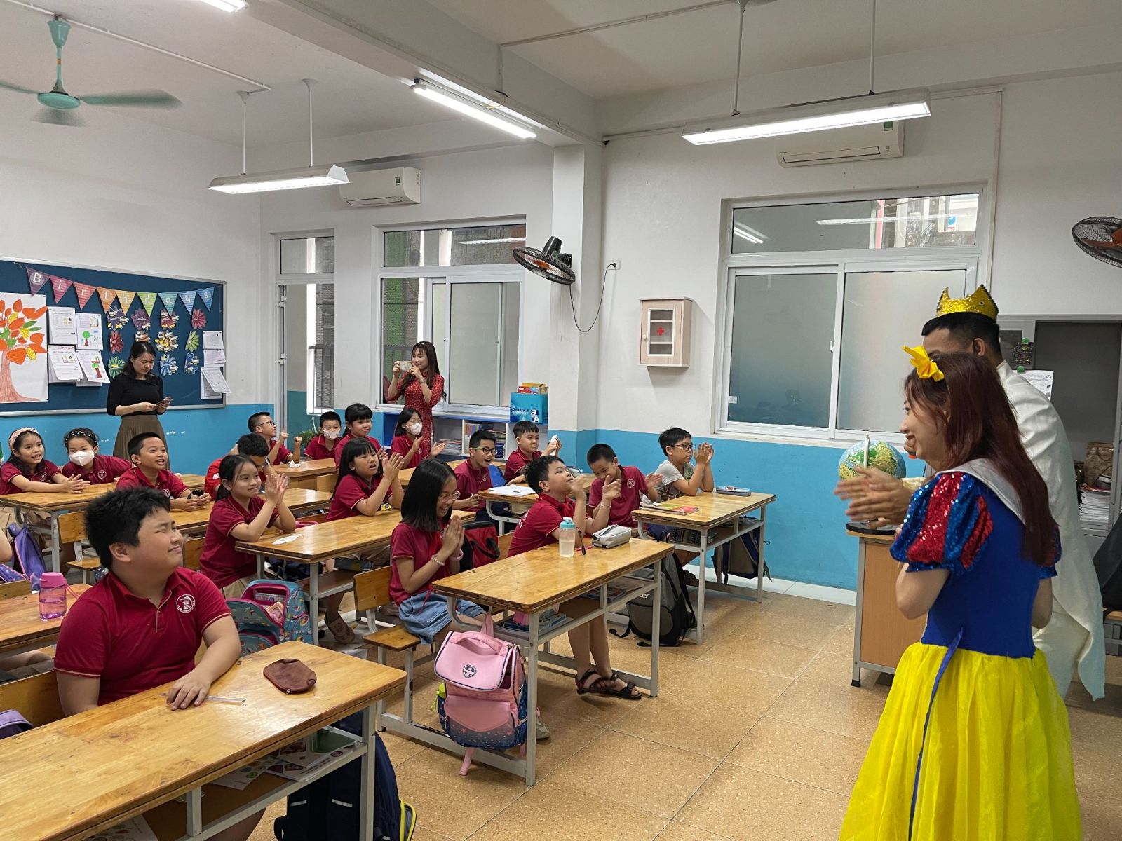 Cơn mưa to sáng nay không ngăn cản được bước chân của các bạn học sinh tới HNTL tham gia Trại hè khám phá DISCOVER SUMMER. Ngày đầu tiên quay trở lại trường, các bạn đều hào hứng, phấn khởi khi được tham gia trò chơi bingo tìm bạn, được trải nghiệm các món ăn qua nhiệm vụ Toán học và tìm hiểu về loài cá mập trắng qua hoạt động Vui cùng Tiếng Việt... Đặc biệt, các bạn như lạc vào xứ sở cổ tích khi được gặp hoàng tử và công chúa siêu đáng yêu nữa đấy bố mẹ ạ. Và còn rất nhiều các hoạt động thú vị khác đang chờ đón các con trong những ngày tiếp theo như hoạt động thể thao dành cho các bạn nam và lớp múa cơ bản, nhẹ nhàng nhưng vô cùng dẻo dai và duyên dáng dành cho các bạn nữ.