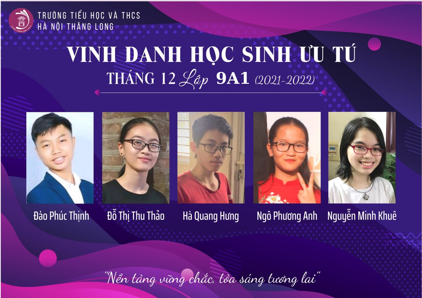 Ban giám hiệu Trường TH & THCS Hà Nội Thăng Long xin chúc mừng các bạn học sinh khối THCS đã vinh dự đạt danh hiệu học sinh tiêu biểu tháng 12 “Students of the month”. Tháng 12 – tháng cao điểm với các hoạt động ôn tập và thi cử. Mặc dù rất gặp rất nhiều khó khăn, trở ngại: áp lực học tập, thi cử; học tập online… nhưng các em học sinh vẫn nỗ lực vươn lên vượt qua khó khăn để khẳng định mình.